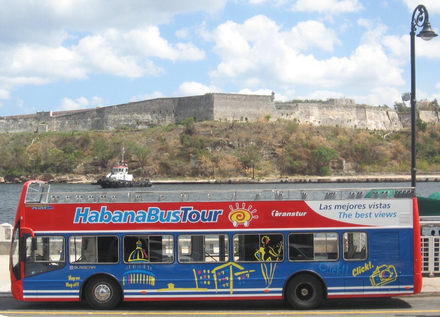 Los Habana Bus Tour, llegan al Parque Central. Salen cada 35 minutos y hacen nueve paradas en las que uno puede bajarse y subirse a su antojo con el mismo ticket. El servicio tiene otras dos líneas – ambas con vistosos vehículos de color rojo y un piso superior descubierto-que nos permitirán conocer gran parte de la ciudad, incluidos el malecón, los barrios del Vedado y Miramar y algunos puntos del centro histórico.